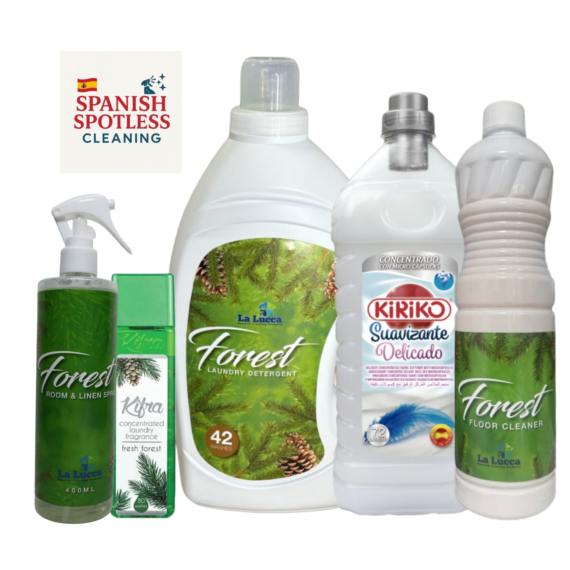 The Forest Full House Bundle delivers comprehensive cleaning coverage for every room in your home. This expertly curated collection pairs Forest Detergent for laundry care with Kiriko Delicardo for delicate fabrics, while Forest Floor tackles hard surfaces with precision. Forest Kifra handles stubborn grime and buildup, and Forest Room & Linen Spray refreshes living spaces and textiles. Together, these five products create a complete cleaning system that addresses diverse household needs with professional-grade formulations, ensuring your entire home maintains spotless standards.